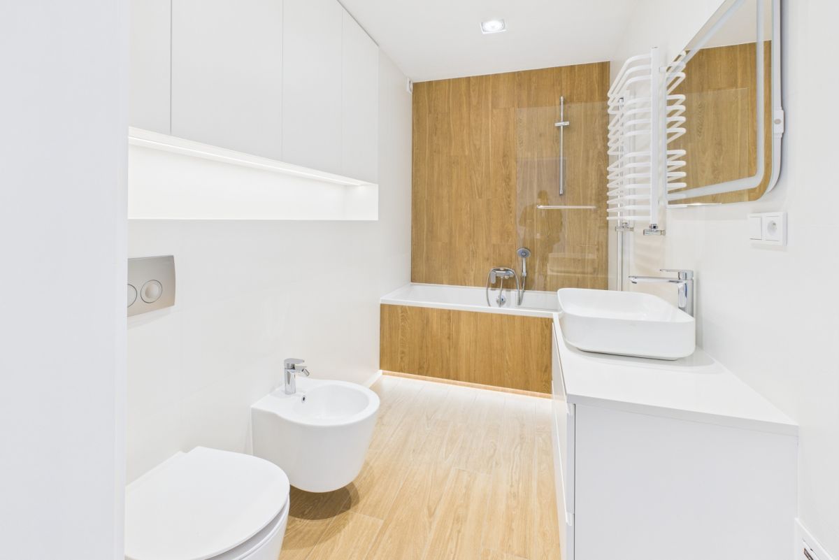 • przestronna łazienka z wanną i toaletą oraz szafkami na wymiar z dużą ilością miejsca do przechowywania.