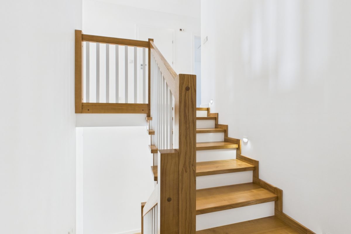 Na górę, do części prywatnej, prowadzą drewniane schody.
