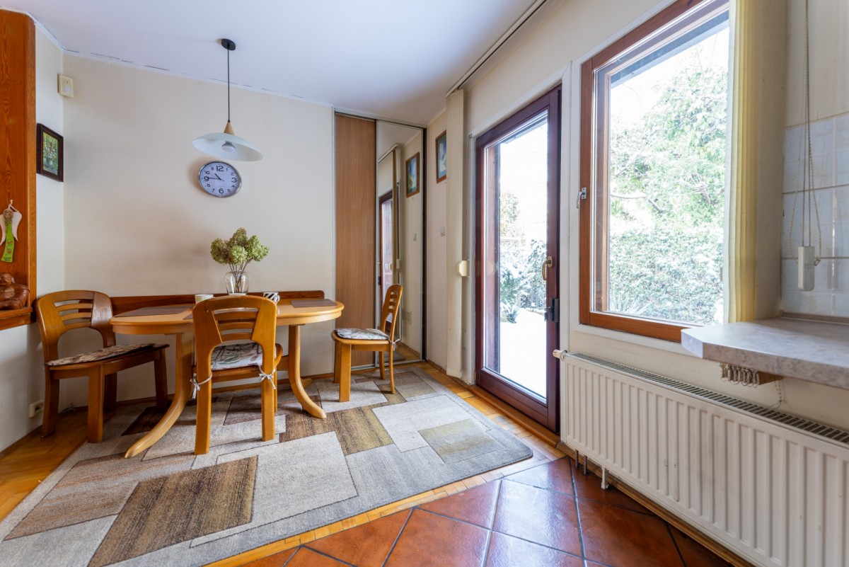 Parterowy dom w zabudowie szeregowej na zamkniętym, bezpiecznym osiedlu domów jednorodzinnych i szeregowych Viking 1 na Białołęce. Otoczony zielenią, z zadbanym ogrodem i spokojnym sąsiedztwem. Powierzchnia 74 m.kw to przestronny i jasny pokój dzienny z bezpośrednim wyjściem do ogrodu, 2 sypialnie, oddzielna kuchnia, łazienka i oddzielne wc. Mieszkanie jest w pełni umeblowane, kuchnia wyposażona w sprzęt AGD, w sypialniach wygodne łózka i przestronne szafy, dodatkowe miejsca do przechowywania w komodach w pokoju dziennym. Przed domem, na osiedlowej ulicy, miejsca do parkowania. Na tym kameralnym osiedlu panuje miła, rodzinna atmosfera, bardzo dobre sąsiedzkie relacje, poczucie przynależności i bezpieczeństwa.