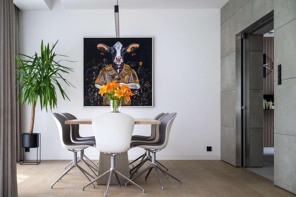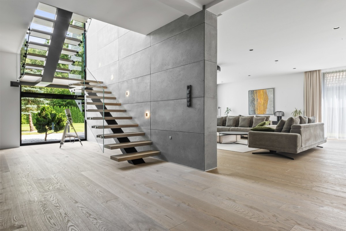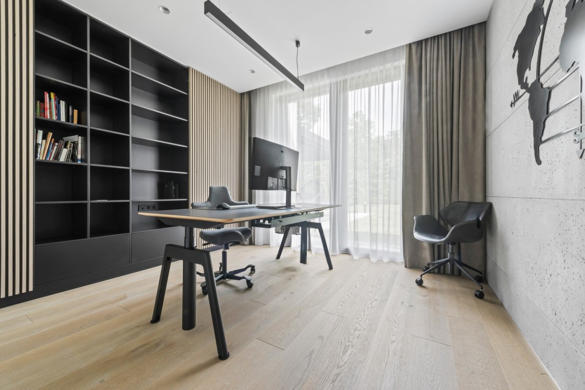 The large-format glazing and huge windows, beautifully showcasing the Kabaty Forest, are truly impressive.