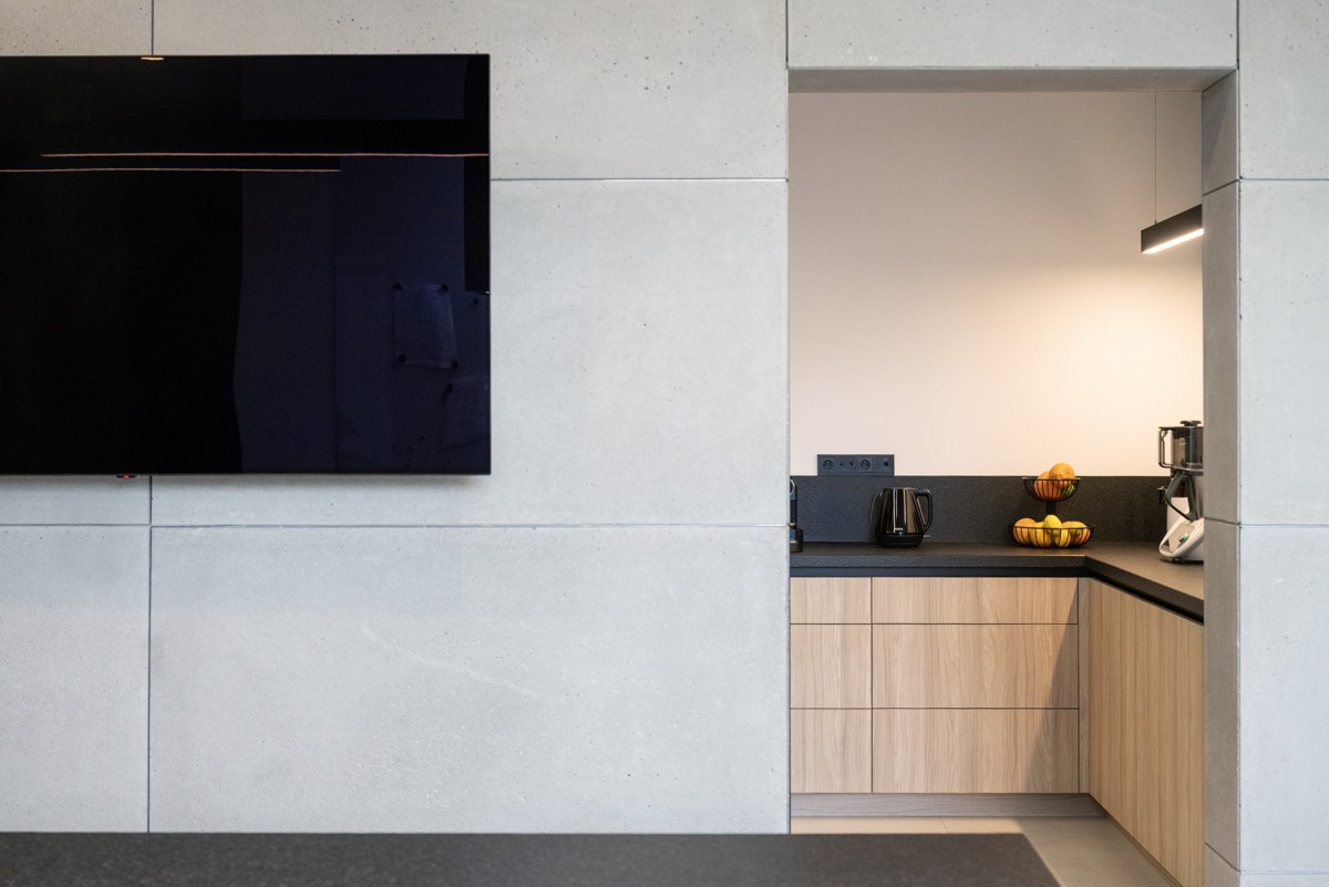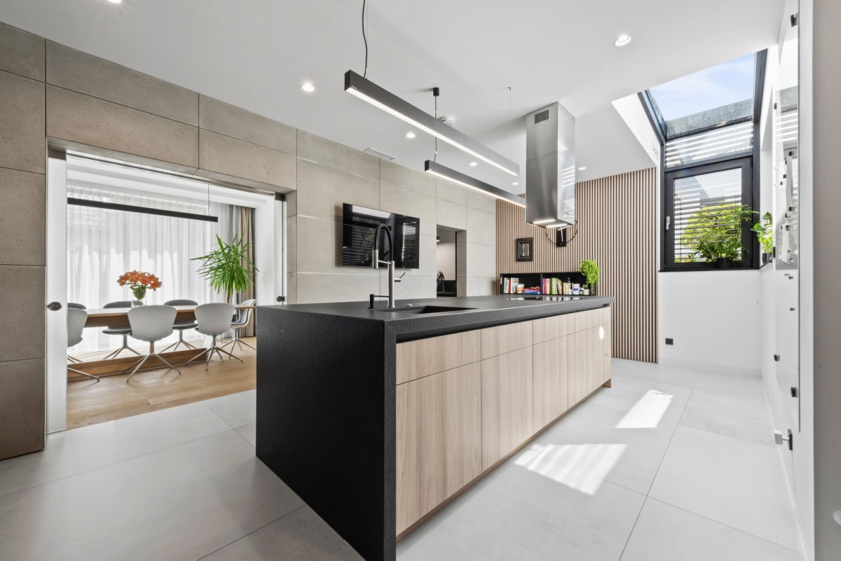 The house has two kitchens. One serves as the representative main kitchen, while the other serves as a working ("dirty") kitchen. Both are equipped with stone countertops, ovens with steam function, dishwashers, etc.