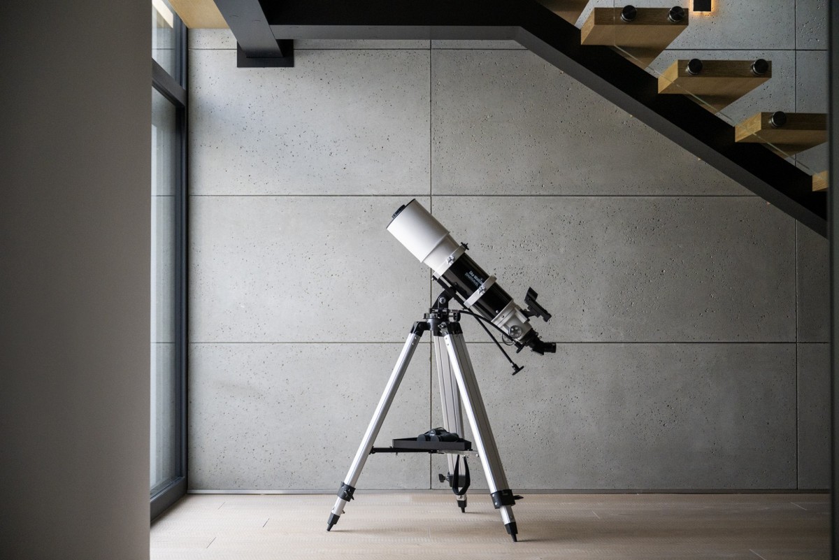Widać go między innymi z przeszklenia na klatce schodowej, o wysokości całego domu.