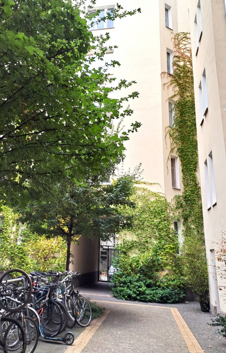 Zagospodarowane podwórko kamienicy, możliwość bezpiecznego zostawienia roweru, parkowanie samochodu przy ulicy Kujawskiej lub Chocimskiej. W pobliżu Instytut Hematologii, siedziby licznych ambasad, instytucje finansowe, budynki administracji publicznej.