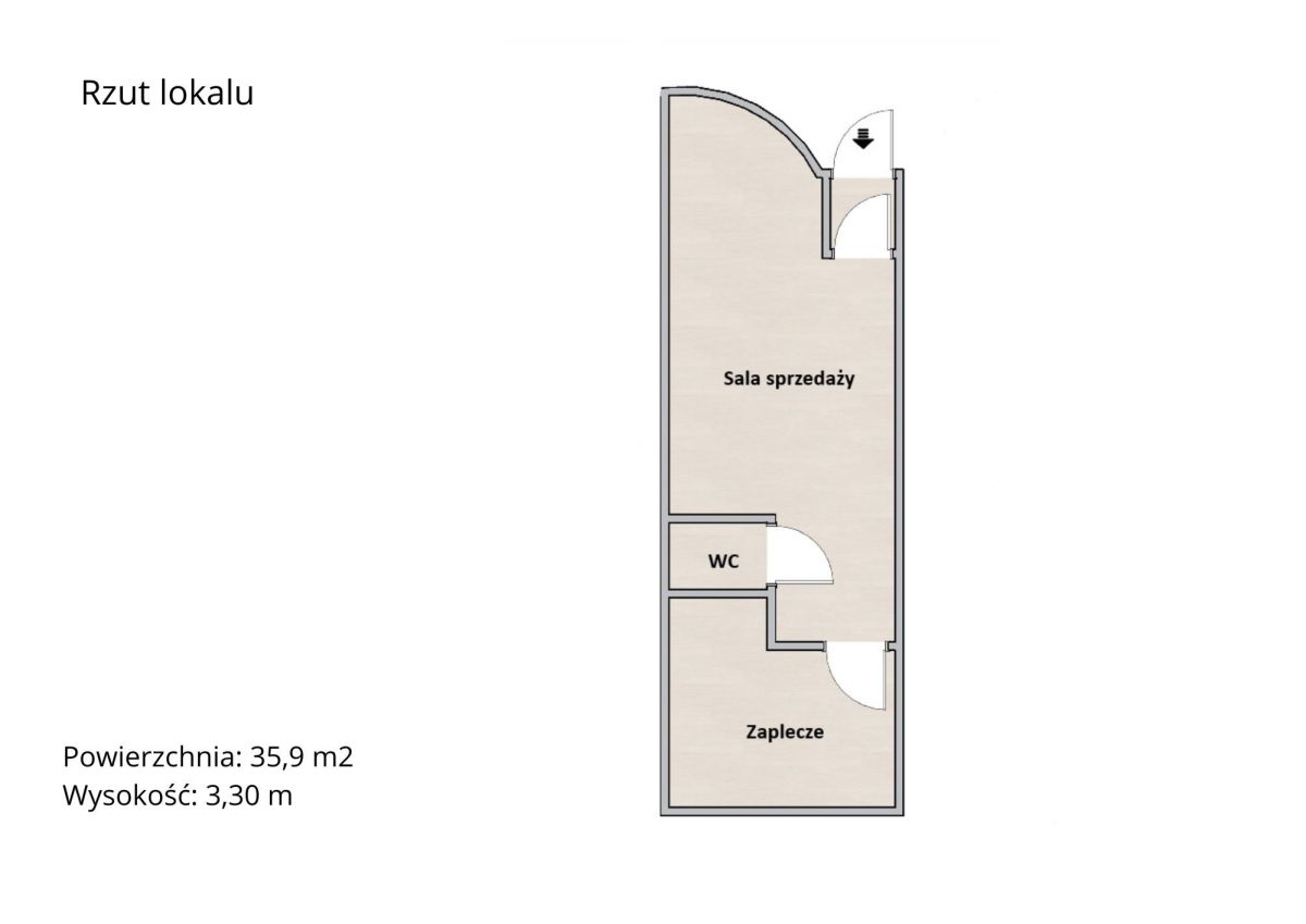 Na powierzchnię lokalu składa się część handlowo-usługowa, zaplecze oraz toaleta.