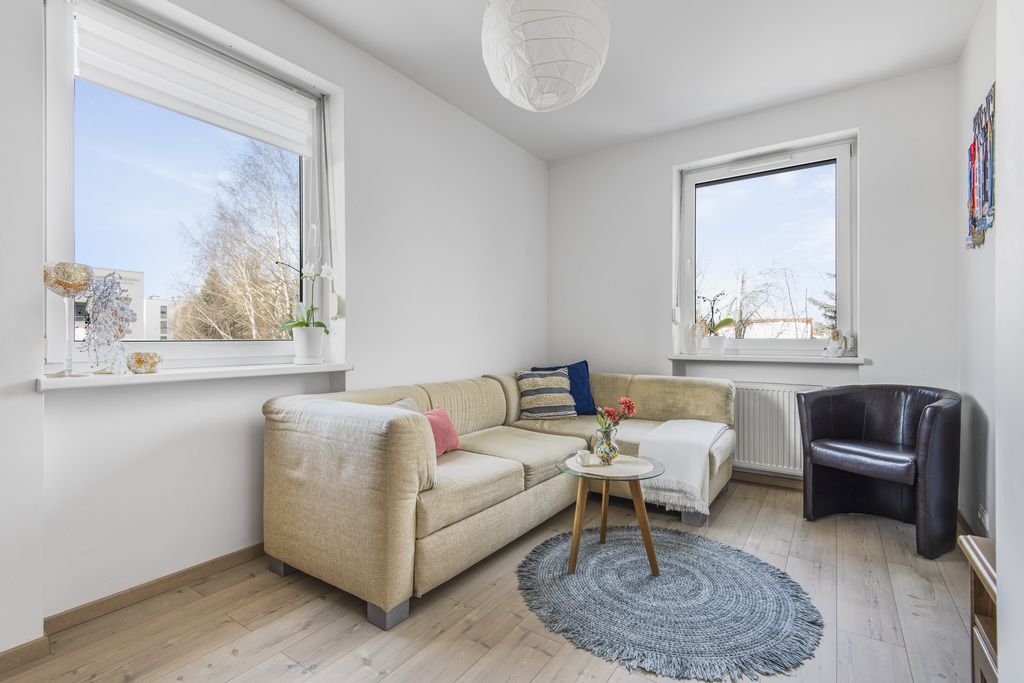 Mieszkanie mieści się w niewysokim budynku się na cichym, zielonym osiedlu, w intensywnie rozwijającej się części warszawskiej Białołęki. W bezpośredniej bliskości znajduje się w pełni rozwinięta infrastruktura: sklepy, placówki oświatowe, punkty usługowe czy restauracje.