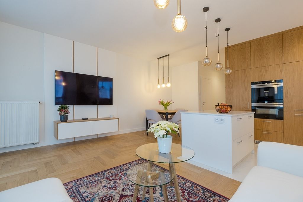 Apartament jest gotowy do wprowadzenia, oferowany w cenie wraz z pełnym umeblowaniem ruchomym widocznym na zdjęciach (z wyłączeniem kilku osobistych dodatków).
