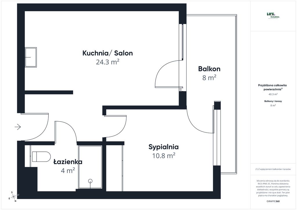 • Salon z aneksem kuchennym: Przestronny, z dużymi oknami i wyjściem na loggię.