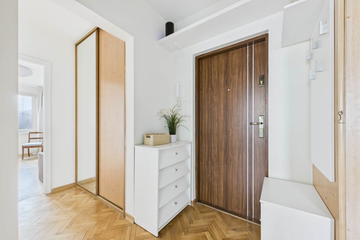 • przedpokój z dwiema dużymi szafami w zabudowie