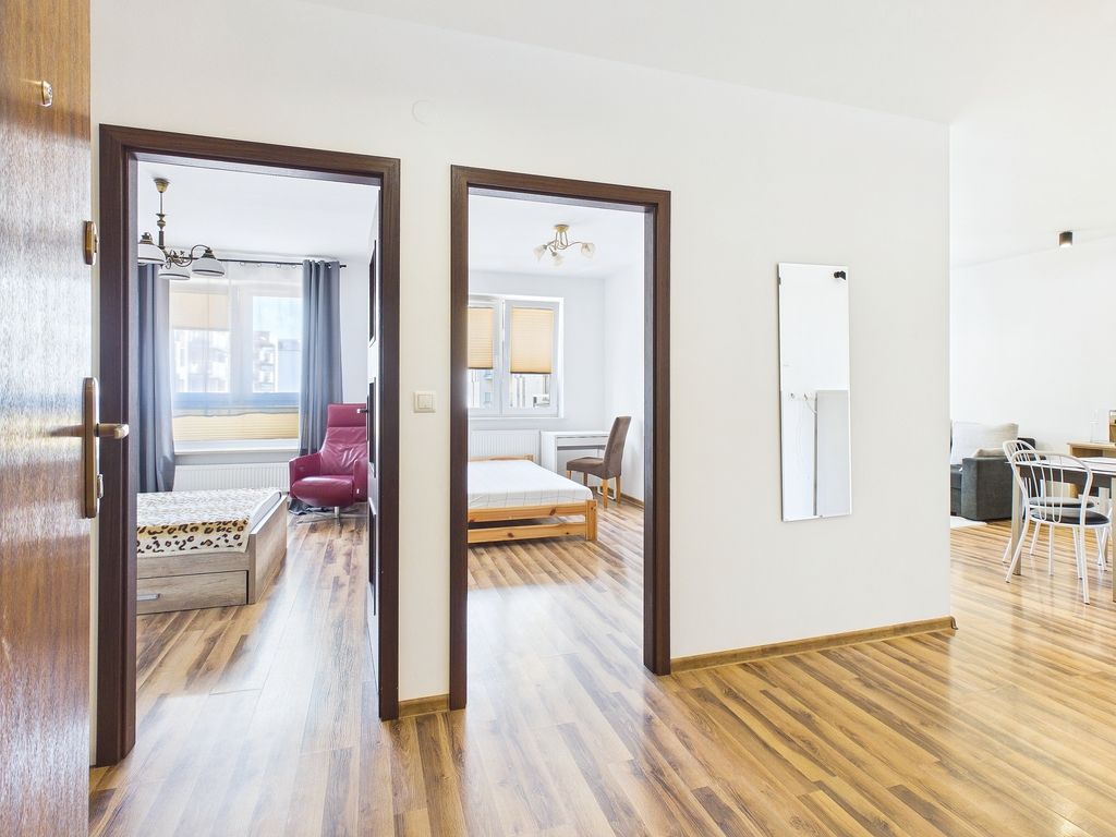 - Dwie sypialnie: Dwa niezależne i ustawne pokoje, które idealnie sprawdzą się jako sypialnia, pokój dziecięcy lub gabinet do pracy.
