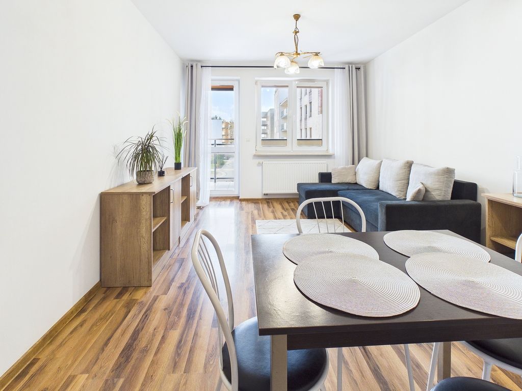 A spacious, furnished, 3-room apartment with an area of 60.6 m² and a storage unit is available for rent. It is ideally located in Warsaw's Ursus district, in the highly regarded, gated Skorosze X community at 4D A. Prystora Street. The space combines functionality with privacy and security. It is an ideal option for couples, families with children, or working individuals seeking a quiet place to live with easy access to all city amenities.